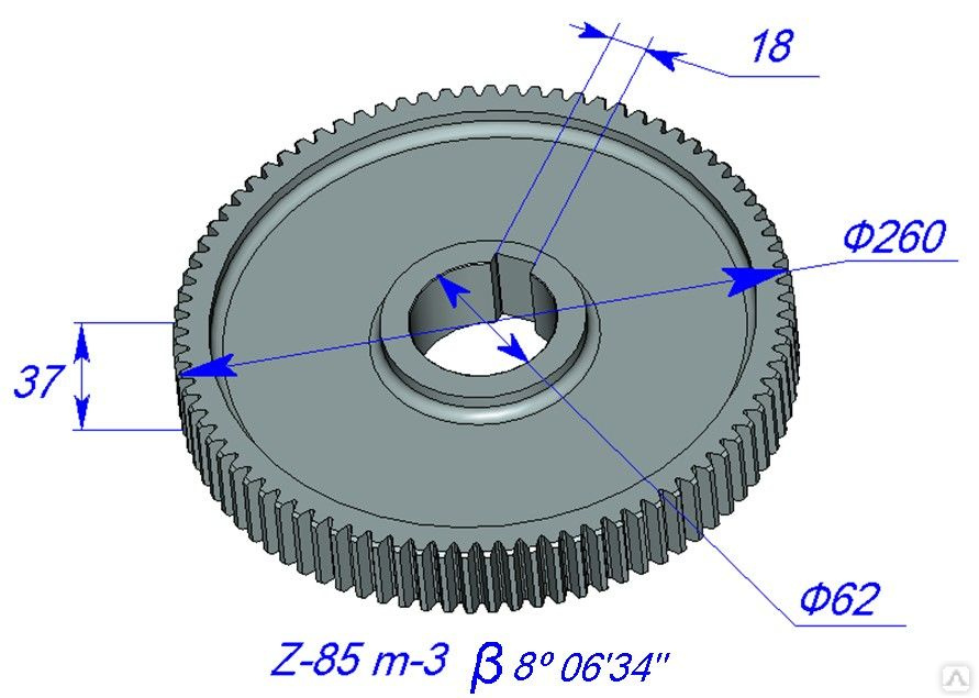 Диаметр 260,37. Ширина колеса:37; Количество зубьев: 85.